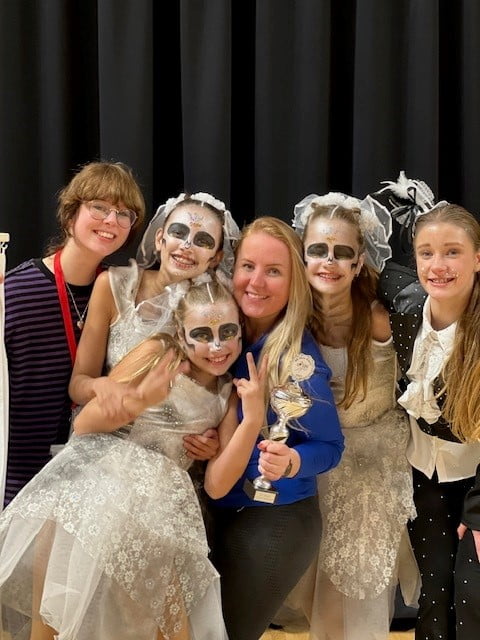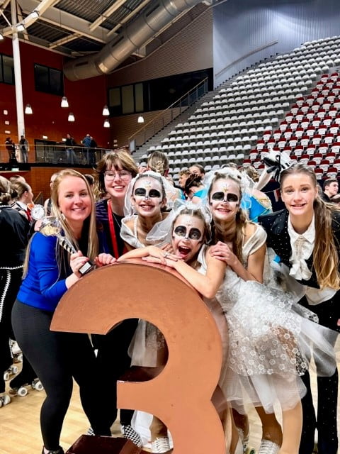 Rond 13.30 uur waren er al veel clubleden om ons kwartet aan te moedigen. Om 13.30 uur ging het NK van start en om 14.50 uur mocht ons kwartet de vloer op. Ze hebben daar een choreografie laten zien van Sylvia Pistorius en Daphne Stormbroek. Het thema: Mysterieuze bruiden. De muziek komt uit de film Corps Bride van Tim Burton. Trainers Ylona en Nina hebben de meiden in de afgelopen maanden met veel passie en toewijding getraind. Kleding is door Sandy en Debby gemaakt. Om de kleding extra te laten glitteren hebben Ylona en Jolanda ook meegeholpen. Schmink is bedacht en aangebracht door Tara, trainsters Daisy en Ylona. Het totaal plaatje was helemaal kloppend, het zag er prachtig uit.