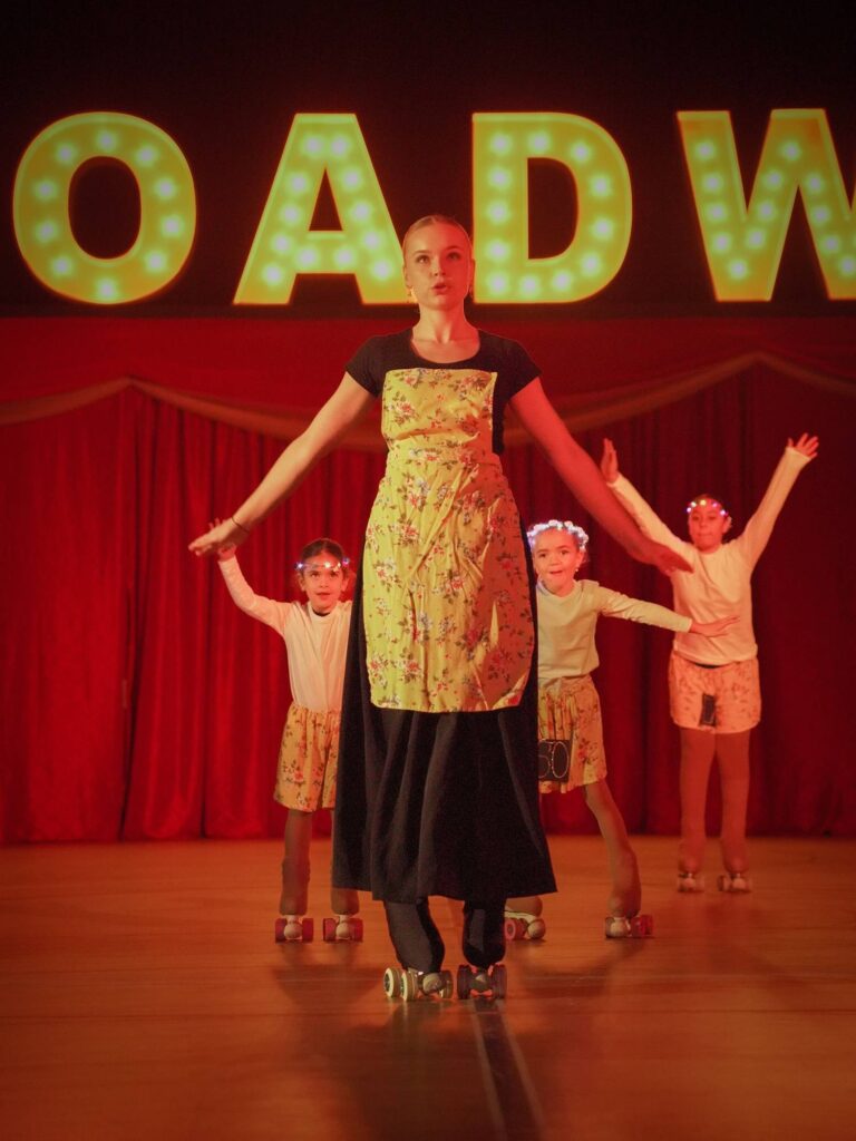 Dansen binnen het kunstrolschaatsen richt zich op ritme, timing en elegantie. De bewegingen zijn vloeiend en nauwkeurig afgestemd op de muziek.